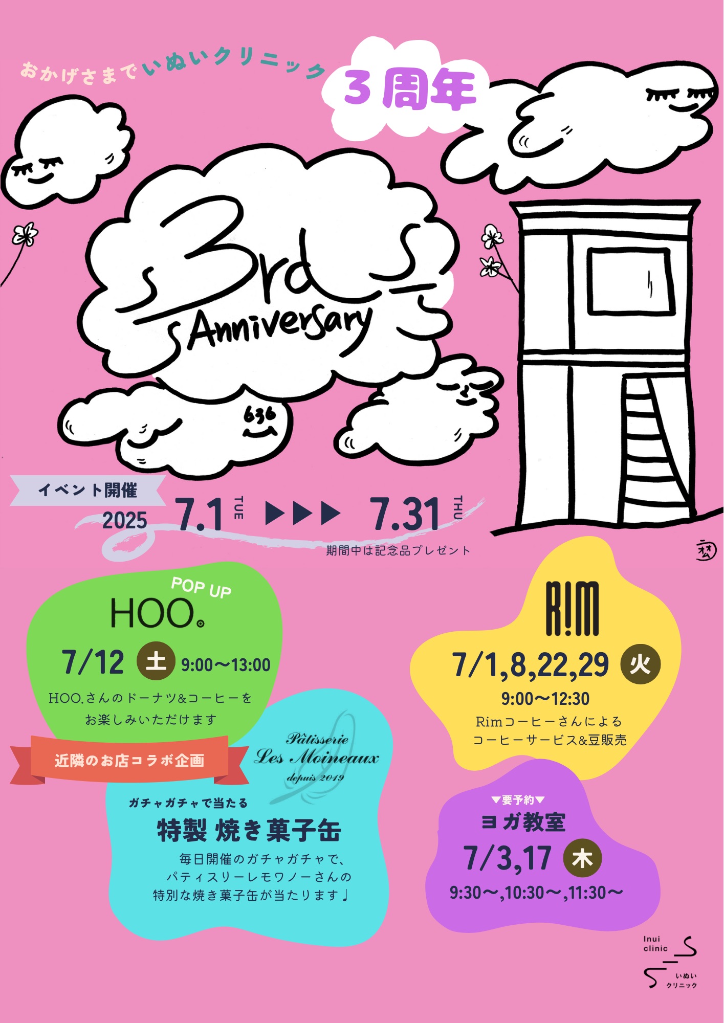 2025年7月でいぬいクリニックは3周年を迎えます。